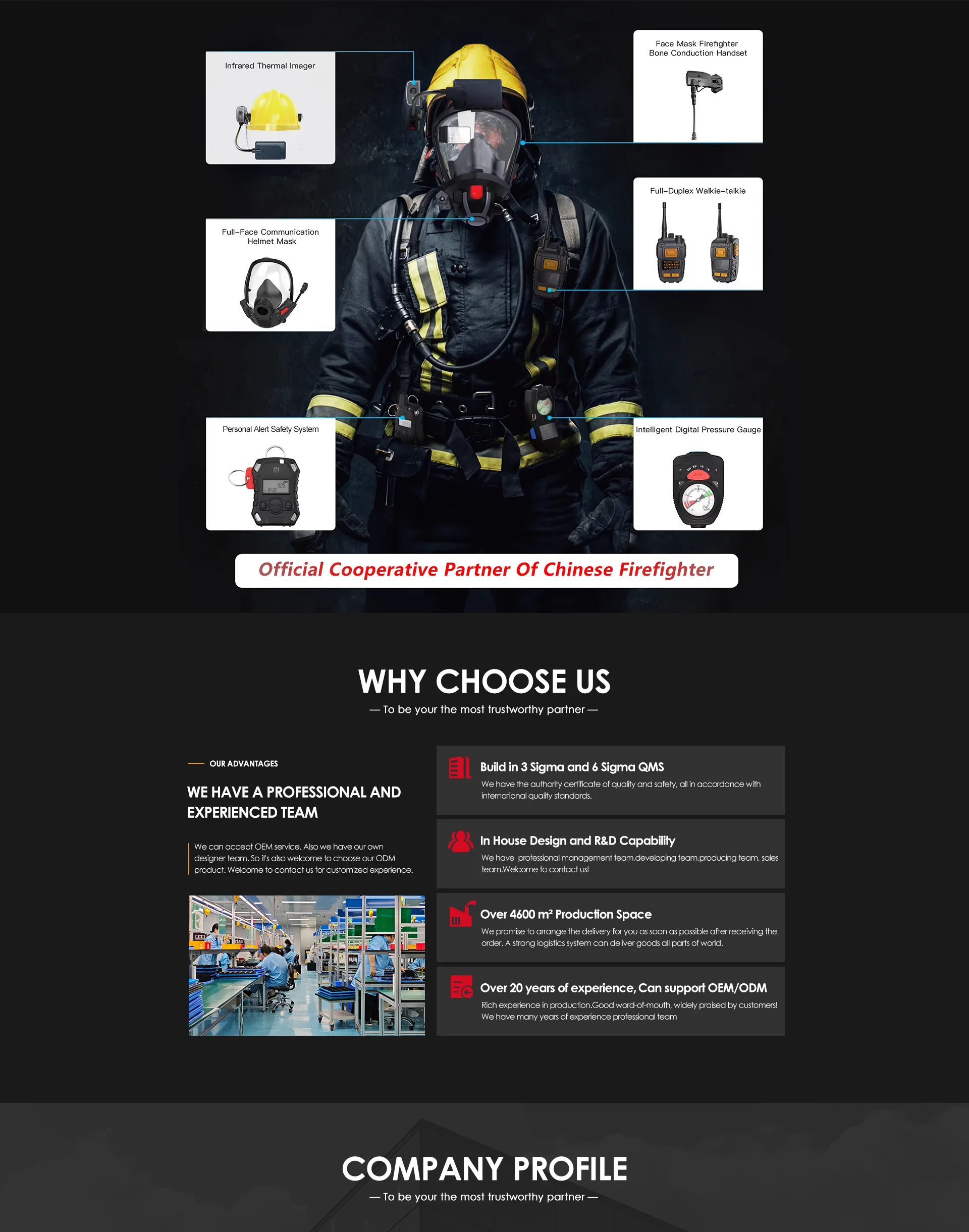 Productos principales:Comunicación grupal, línea de iluminación de rescate, cámara térmica infrarroja, dispositivo SCBA, PASS